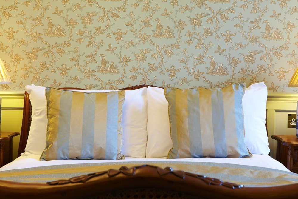 Room 41 is located in the Carriage House courtyard having a ‘New England’ beachside theme with part panelled walls finished in an off white palette. Light oak furniture is complimented by a superking size bed with an oversized pinstripe headboard and a pair of comfortable armchairs to relax and unwind in.